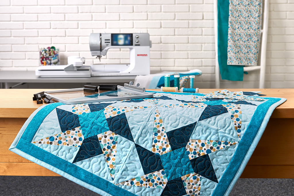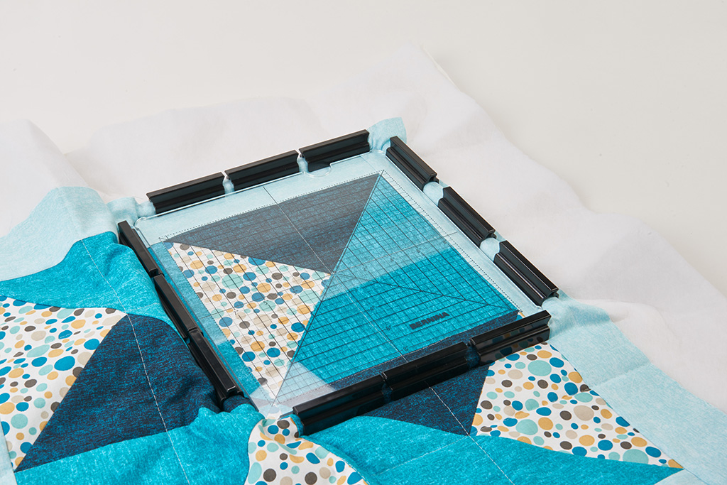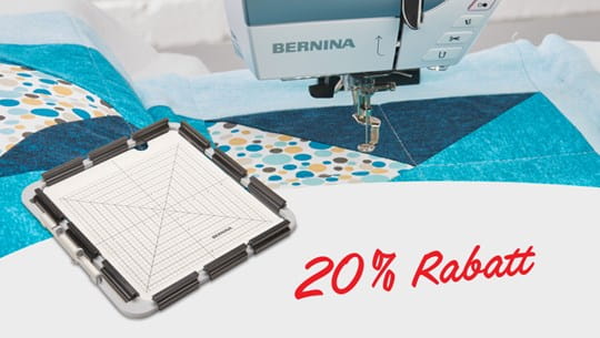 Der BERNINA Klemmen-Stickrahmen ist der ideale Stickrahmen für Quilterinnen und Quilter. Die quadratische Form eignet sich perfekt für quadratische Motive, wie sie beim Quilten üblich sind. Dadurch sparen Sie im Vergleich zu ovalen Stickrahmen sowohl Stickvlies als auch Stoff.